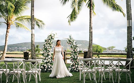 カベナ・ガーデンは、カネオヘ湾を望むハワイの大自然に抱かれた場所。木漏れ日が溢れ、鳥がさえずる森の中でのボーホーウェディング、そして海に面した庭園での寛ぎのお時間をゲストの皆様に提供します。従来とは全く異なるハワイウェディングをムームーレインボーがプロデュースします。