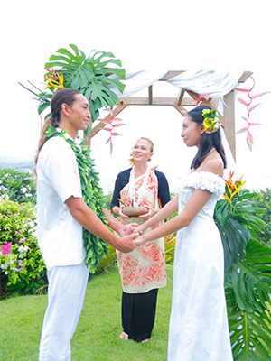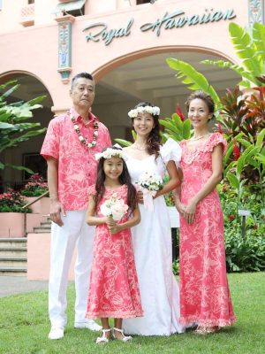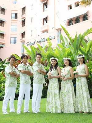 ハワイウェディングの新郎新婦とゲストへ贈る、ムームーレインボーとハワイの伝統的ブランド、プリンセス・カイウラニとのコラボレーションで独自企画製造された参列衣装のスタイルブック。ハワイウェディングのコーディネート、衣装選びのご参考にお役立てください。
